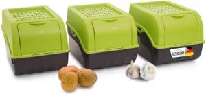Kartoffel Aufbewahrungsboxen Set | 3,5L + 5L + 9L | GRÜN | Kartoffelboxen | Gemüseboxen stapelbar Zwiebelboxen Kartoffelkörbe Obstbehälter Kartoffelkisten Frischhaltedosen