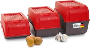 Kartoffel Aufbewahrungsboxen Set | 3,5L + 5L + 9L | ROT | Kartoffelboxen | Gemüseboxen stapelbar Zwiebelboxen Kartoffelkörbe Obstbehälter Kartoffelkisten Frischhaltedosen