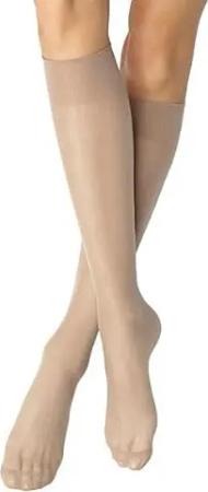Knie Seidenfein 15 DEN transparente Nylon Fein-Kniestrümpfe seidig glänzend breiter Komfortbund Damen, teint, one size