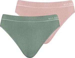 2er Pack Retro Slip Mehrfarbig sportlich Unterhosen aus Baumwolle Unterwäsche Damen, Rose/Khaki, M