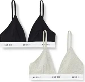2er Pack Soft BH sportlich ohne Bügel bügelloser BH Triangel Bra Bustier Baumwolle Damen, Graumelange/Weiss, S