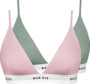 2er Pack Soft BH sportlich ohne Bügel bügelloser BH Triangel Bra Bustier Baumwolle Damen, Khaki/Rose, XL