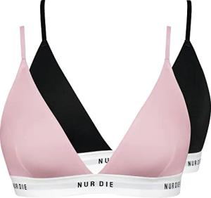 2er Pack Soft BH sportlich ohne Bügel bügelloser BH Triangel Bra Bustier Baumwolle Damen, schwarz/Rose, S