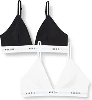 2er Pack Soft BH sportlich ohne Bügel bügelloser BH Triangel Bra Bustier Baumwolle Damen, schwarz/Weiss, M