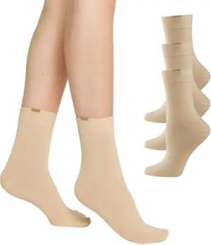 3er Pack Passt Perfekt Socken atmungsaktive Baumwolle einfarbig Komfortbund ohne drückende Naht Damen, beige, 35-38