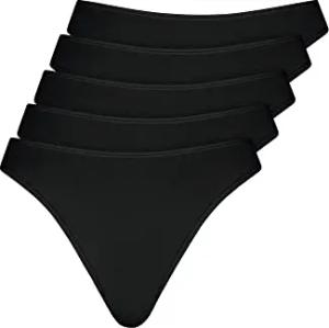 5er Pack String Tanga Mehrfarbig aus Baumwolle Stretch Unterwäsche Unterhosen Basic Mehrpack Damen, schwarz, L