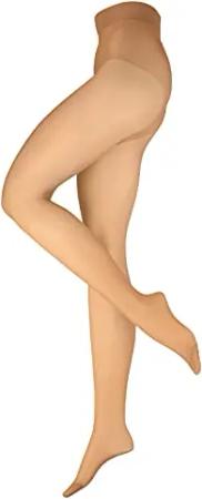 Figura 25 DEN Shaping-Strumpfhose transparente glänzende Feinstrumpfhose breiter Komfortbund Bauch-Weg Damen, mandel, M