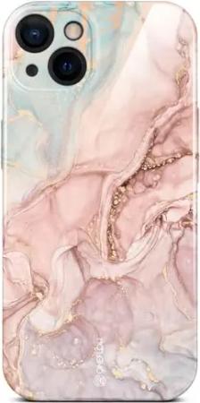 Bliss Cover für iPhone 13 Hülle in Marmor Optik, Designer Case Handy Schutzhülle mit Kameraschutz, Muster Hardcase Glitzer Handyhülle marmoriert, Rosa Grau