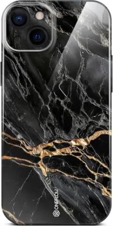 Bliss Cover für iPhone 13 Hülle in Marmor Optik, Designer Case Handy Schutzhülle mit Kameraschutz, Muster Hardcase Glitzer Handyhülle marmoriert, Schwarz Gold