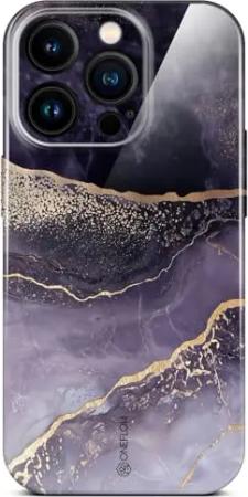 Bliss Cover für iPhone 15 Pro Hülle in Marmor Optik, Designer Case Handy Schutzhülle mit Kameraschutz, Muster Hardcase Glitzer Handyhülle marmoriert, Lila Gold