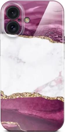 Bliss Cover für iPhone 16 Hülle in Marmor Optik, Designer Case Handy Schutzhülle mit Kameraschutz, Muster Hardcase Glitzer Handyhülle marmoriert, Rot Gold Weiß