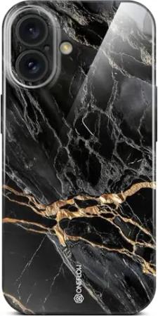 Bliss Cover für iPhone 16 Hülle in Marmor Optik, Designer Case Handy Schutzhülle mit Kameraschutz, Muster Hardcase Glitzer Handyhülle marmoriert, Schwarz Gold