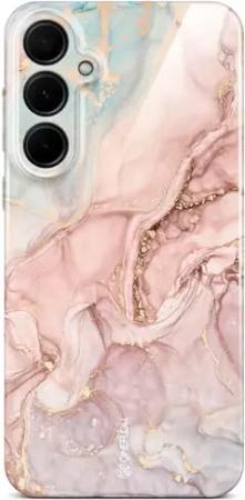Bliss Cover für Samsung Galaxy A35 5G Hülle in Marmor Optik, Designer Case Handy Schutzhülle mit Kameraschutz, Muster Hardcase Glitzer Handyhülle marmoriert, Rosa Grau