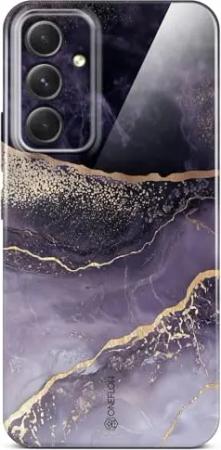 Bliss Cover für Samsung Galaxy A54 5G Hülle in Marmor Optik, Designer Case Handy Schutzhülle mit Kameraschutz, Muster Hardcase Glitzer Handyhülle marmoriert, Lila Gold