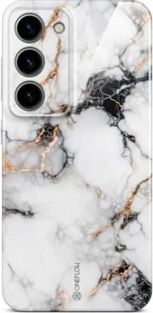 Bliss Cover für Samsung Galaxy S23 Hülle in Marmor Optik, Designer Case Handy Schutzhülle mit Kameraschutz, Muster Hardcase Glitzer Handyhülle marmoriert, Weiß Gold