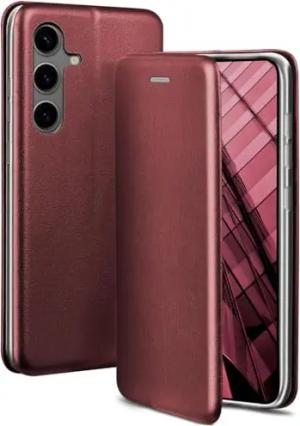 Handyhülle kompatibel mit Samsung Galaxy S24 - Hülle klappbar, Handytasche mit Kartenfach, Flip Case Call Funktion, Leder Optik Klapphülle mit Silikon Bumper, Weinrot