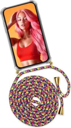 Handykette für Redmi Note 13 Pro+ 5G Hülle mit Band, Handyhülle mit Kette abnehmbar, Handyband zum Umhängen, Handy Umhängeband Lange Handykordel, Twist Case – Bunt