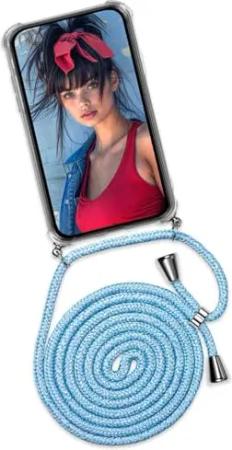 Handykette für Samsung Galaxy S21 Hülle mit Band, Handyhülle mit Kette abnehmbar, Handyband zum Umhängen, Handy Umhängeband Lange Handykordel, Twist Case – Blau Hellblau