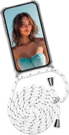 Handykette für Samsung Galaxy A23 5G Hülle mit Band, Handyhülle mit Kette abnehmbar, Handyband zum Umhängen, Handy Umhängeband Lange Handykordel, Twist Case – Weiß Silber