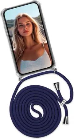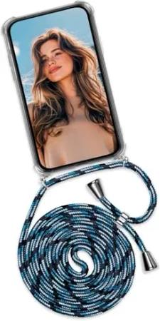 Handykette für Redmi Note 13 Pro+ 5G Hülle mit Band, Handyhülle mit Kette abnehmbar, Handyband zum Umhängen, Handy Umhängeband Lange Handykordel, Twist Case – Blau Silber