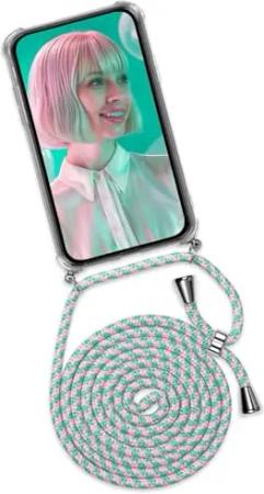 Handykette für Samsung Galaxy S21 Hülle mit Band, Handyhülle mit Kette abnehmbar, Handyband zum Umhängen, Handy Umhängeband Lange Handykordel, Twist Case – Mint grau