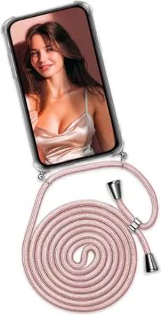 Handykette für Samsung Galaxy S24 Hülle mit Band, Handyhülle mit Kette abnehmbar, Handyband zum Umhängen, Handy Umhängeband Lange Handykordel, Twist Case – Rosa