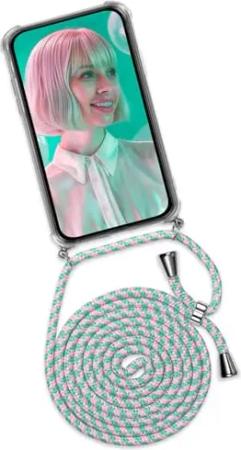 Handykette für Samsung Galaxy S24 Hülle mit Band, Handyhülle mit Kette abnehmbar, Handyband zum Umhängen, Handy Umhängeband Lange Handykordel, Twist Case – Mint Grün