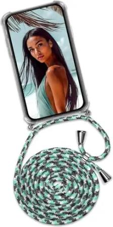 Handykette für Samsung Galaxy A55 5G Hülle mit Band, Handyhülle mit Kette abnehmbar, Handyband zum Umhängen, Handy Umhängeband Lange Handykordel, Twist Case – Mint Grün