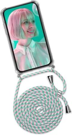 Handykette für Samsung Galaxy S21 Hülle mit Band, Handyhülle mit Kette abnehmbar, Handyband zum Umhängen, Handy Umhängeband Lange Handykordel, Twist Case – Mint Rosa