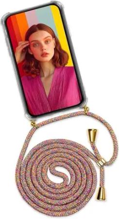 Handykette für Samsung Galaxy S21 Hülle mit Band, Handyhülle mit Kette abnehmbar, Handyband zum Umhängen, Handy Umhängeband Lange Handykordel, Twist Case – Rainbow