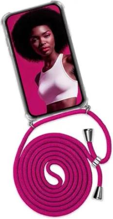 Handykette für Samsung Galaxy S21 Hülle mit Band, Handyhülle mit Kette abnehmbar, Handyband zum Umhängen, Handy Umhängeband Lange Handykordel, Twist Case – Rosa Pink