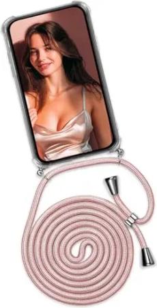 Handykette für Samsung Galaxy S21 Hülle mit Band, Handyhülle mit Kette abnehmbar, Handyband zum Umhängen, Handy Umhängeband Lange Handykordel, Twist Case – Rosegold