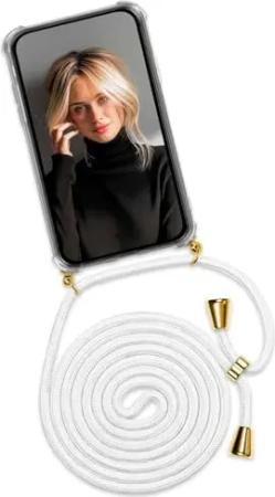 Handykette für Samsung Galaxy A54 5G Hülle mit Band, Handyhülle mit Kette abnehmbar, Handyband zum Umhängen, Handy Umhängeband Lange Handykordel, Twist Case – Weiß Gold