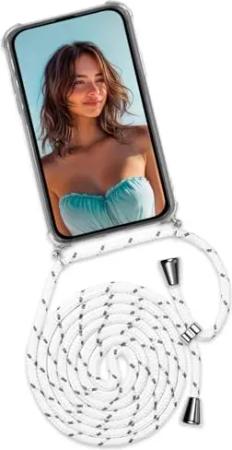 Handykette für Samsung Galaxy S21 Hülle mit Band, Handyhülle mit Kette abnehmbar, Handyband zum Umhängen, Handy Umhängeband Lange Handykordel, Twist Case – Weiß Silber
