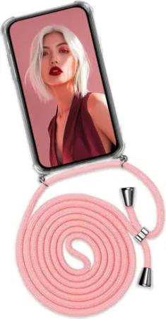 Handykette für Samsung Galaxy S21 Hülle mit Band, Handyhülle mit Kette abnehmbar, Handyband zum Umhängen, Handy Umhängeband Lange Handykordel, Twist Case – Rosa