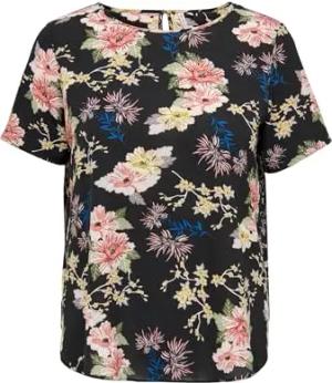 Damen Carvica Top Wvn Noos Bluse, Black/Aop:lena Flower, 44 Große Größen EU