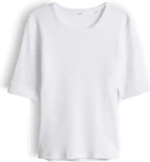 Damen Kurzarmshirt | Feines Rippshirt SUSTAFA Slim aus BCI Cotton Mix White, 44