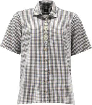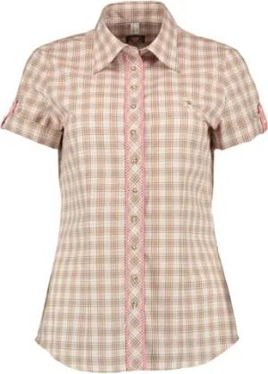 OS Trachten Damen Bluse Kurzarm Trachtenbluse mit Liegekragen Wyfop, Größe:42, Farbe:Mittelbeige