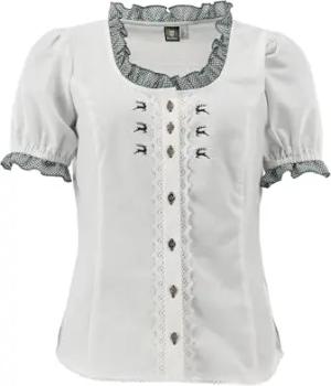 OS Trachten Kurzarm Trachtenbluse mit V-Ausschnitt Tuvori, Größe:44, Farbe:weiß