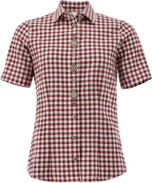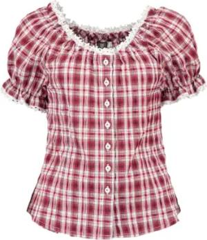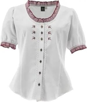 OS Trachten Damen Bluse Kurzarm Trachtenbluse mit Rundhalsausschnitt Fluspi, Größe:46, Farbe:weiß-weinrot