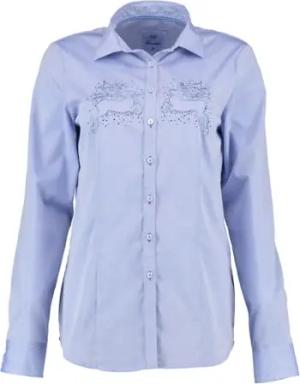 OS Trachten Damen Bluse Langarm Trachtenbluse mit Liegekragen Feqoy, Größe:46, Farbe:hellblau/bleu