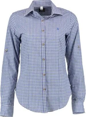 OS Trachten Damen Bluse Langarm Trachtenbluse mit Liegekragen Grovo, Größe:42, Farbe:Mittelblau