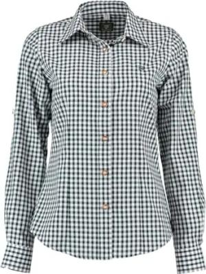 OS Trachten Damen Bluse Langarm Trachtenbluse mit Liegekragen Prami, Größe:34, Farbe:dunkelgrün