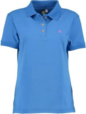 OS Trachten Damen Poloshirt Kurzarm Shirt Trachtenshirt mit Polokragen Laukas, Größe:S, Farbe:mittelblau