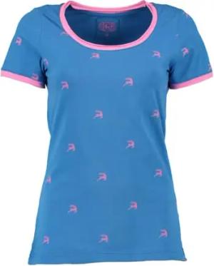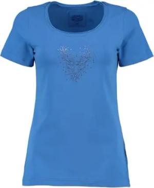OS Trachten Damen T-Shirt Kurzarm Trachtenshirt mit Rundhalsausschnitt Wimporo, Größe:S, Farbe:Mittelblau-hellblau