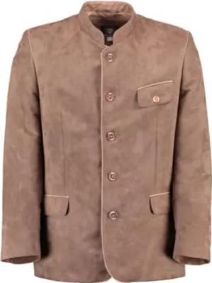 OS Trachten Herren Trachtensakko Janker Trachtenjacke mit Stehkragen Bravi, Größe:28, Farbe:mittelbraun