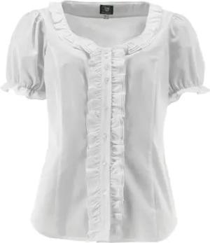 OS Trachten Damen Bluse Kurzarm Unterziehbluse Trachtenbluse mit Kastenausschnitt Vebil, Größe:46, Farbe:weiß