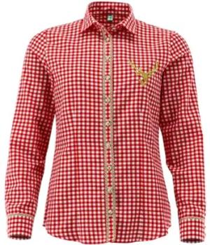 OS Trachten Langarm Trachtenbluse mit Haifischkragen Foruka, Größe:42, Farbe:mittelrot