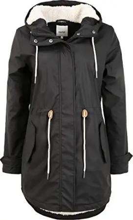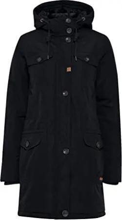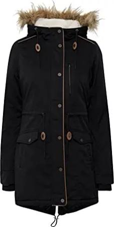 OXBella Damen Parka Übergangsmantel Lange Jacke mit Kapuze Pattentaschen Regular fit, Größe:XS, Farbe:BLACK (799000)