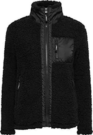 Ellin Sweatjacke Damen Jacke mit Teddyfutter außen kurz mit Stehkragen, Größe:XL, Farbe:Black (194007)